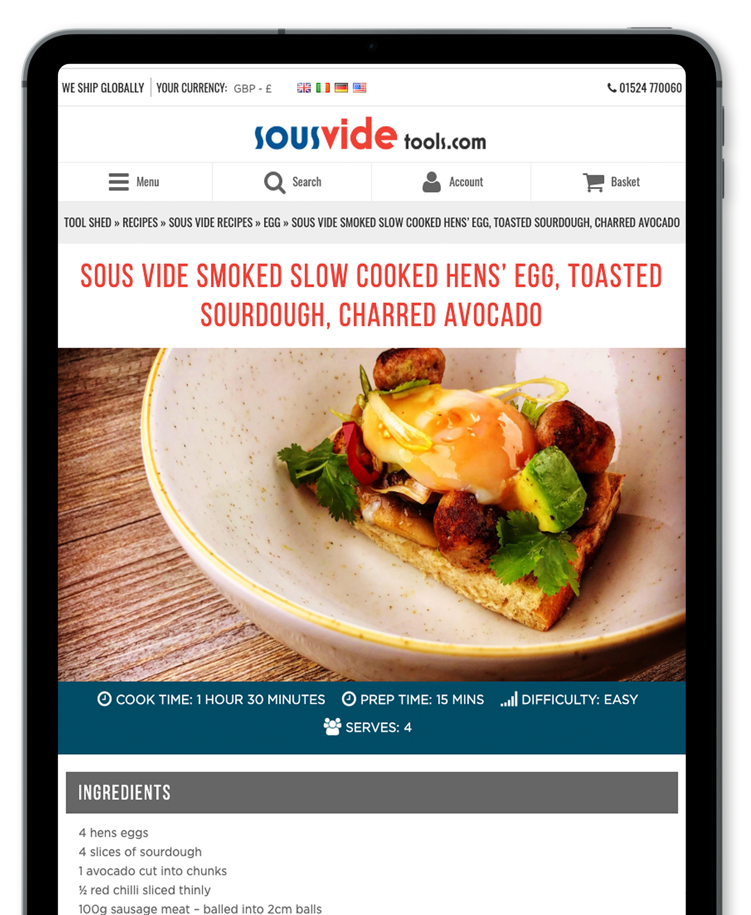 Download our ivide app today it’s the perfect partner for cooking sous vide. Simply choose a food you wish to cook and how you would like it cooked and our app will do the rest for you, it's as simple as that. Packed with over 600 recipes and many more to come from the world's leading chefs, this app can't be missed. We can’t wait to join you on your sous vide journey and have lots more exciting information to bring to you.