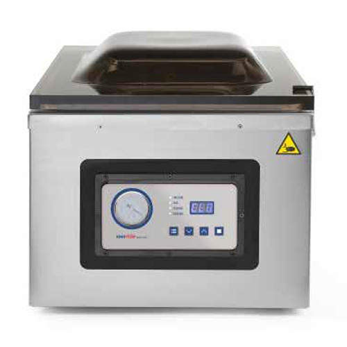 In commercial kitchens, vacuum sealing for sous vide cooking is typically accomplished using a chamber vacuum sealer, a device which create low pressure environments in and around food pouches throughout the processes